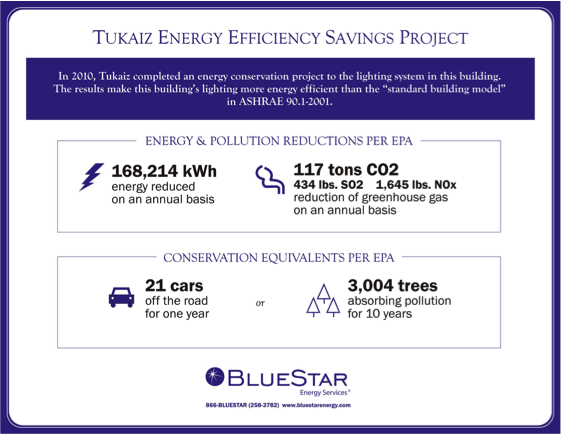 In 2010, Tukaiz completed an energy conservation project to the lighting system throughout the Tukaiz campus. This resulted in drastically reducing our pollution and energy levels, by transforming the lighting in all of our buildings to be more energy efficient than the “Standard Building Model” in ASHRAE 90.1-2001