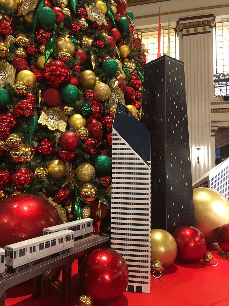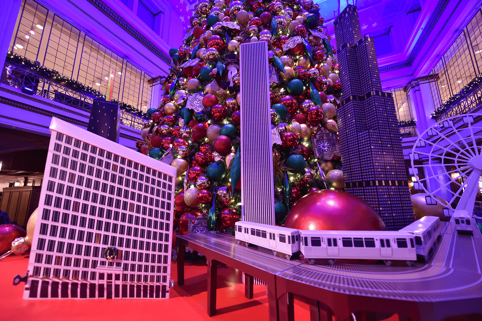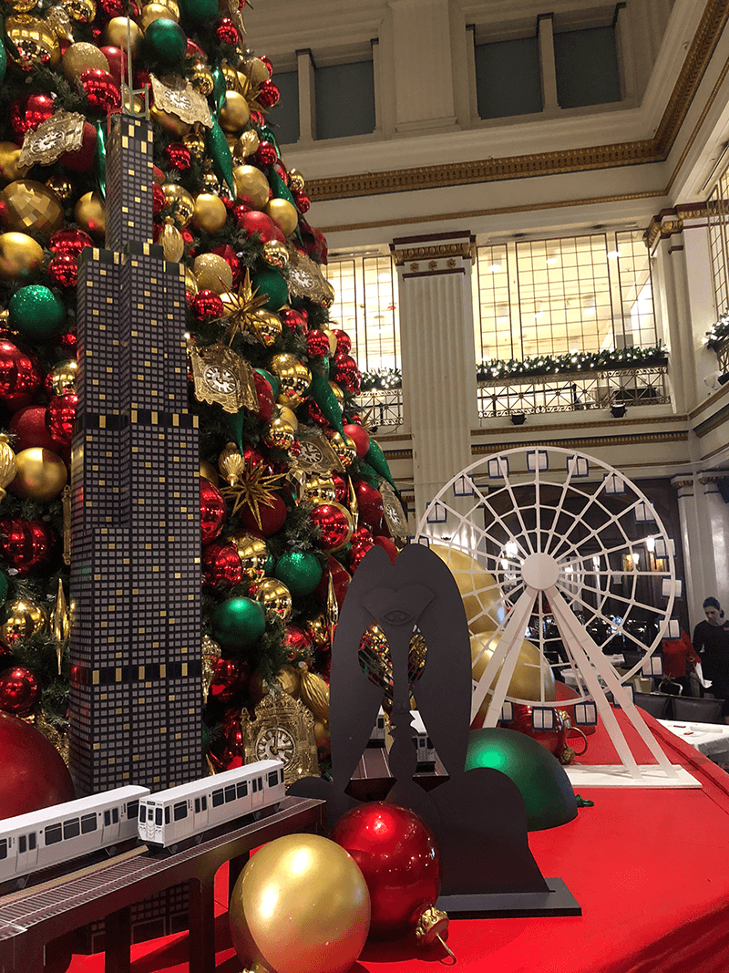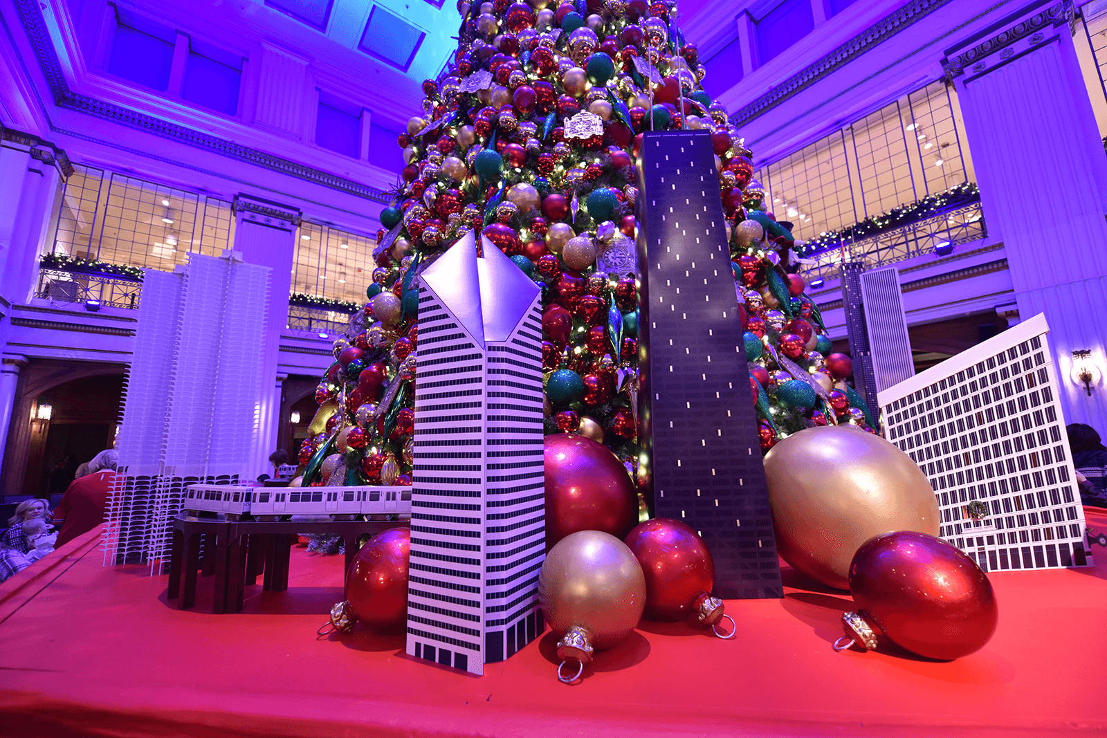 The exhibit is open from now until January 5th with varying holiday hours throughout the season. Visit The Walnut Room and check out our Chicago skyline as well as the other extravagant decorations on display!
