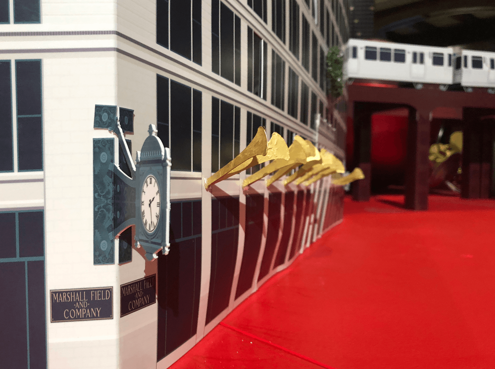 What do you do when you are asked to be part of an iconic Chicago holiday institution? Well, you jump at the chance quicker than “you know who” goes up the chimney. This year, Tukaiz was asked by Macy’s on State Street to create a 3D Chicago skyline for their annual holiday display. As proud members of the Chicago community for 55 years, Tukaiz couldn’t have been more excited to take part in their century old holiday tradition. The team set to work on translating the brick, glass and steel structures to a much smaller scale and to the world of paper and print. With the combined power and cohesion of Tukaiz’ four divisions – Creative, Production, Print, and Fulfillment – we were able to design, produce, and rebuild the city all within the Tukaiz campus. We then transported the Chicago display to Macy’s 111 N State Street location, where it can now be seen surrounding the Great Tree in the world-famous Walnut Room on the 7th floor.
